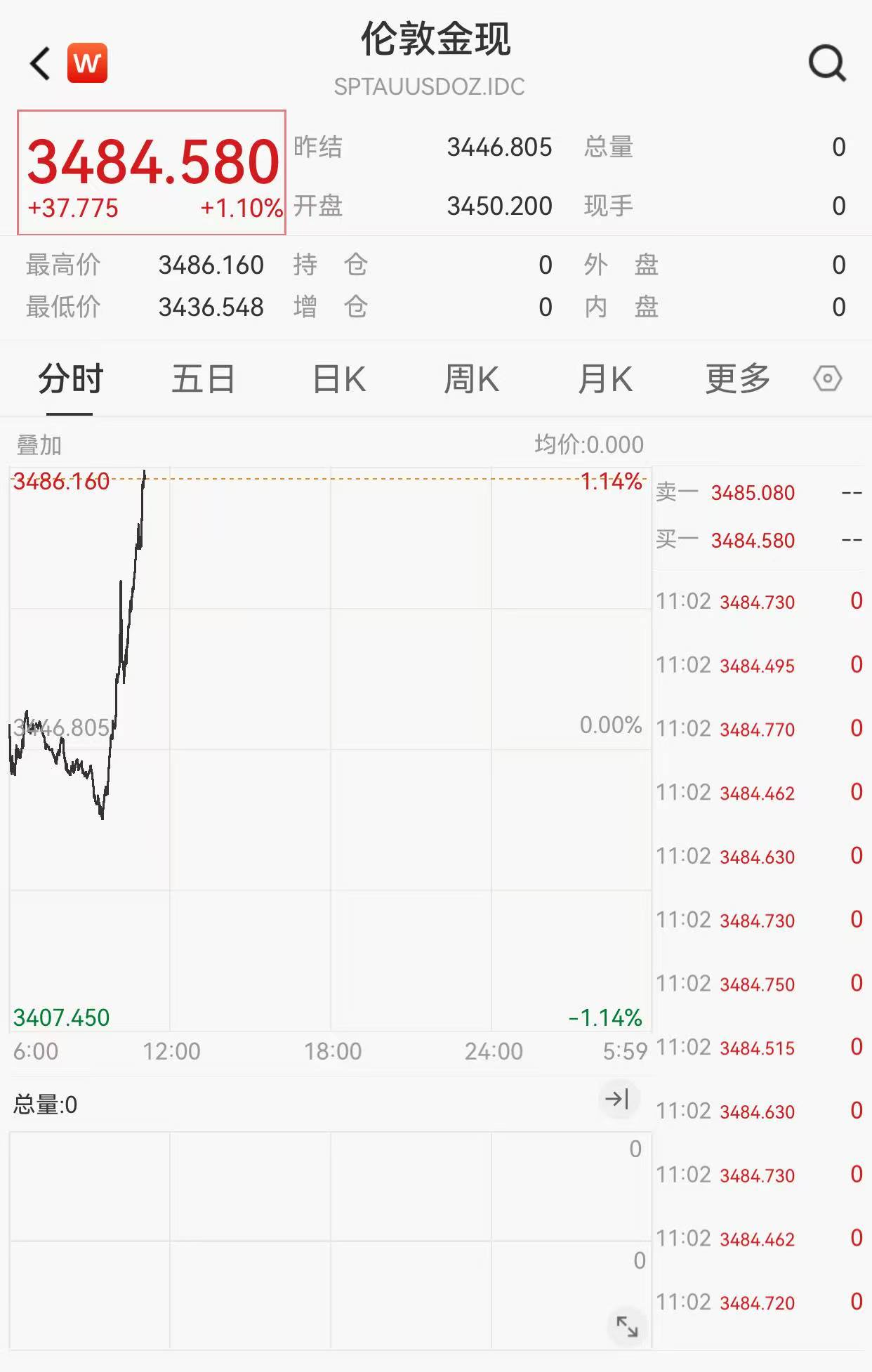 突破性$ 3,500品牌,国际金价指南连续五次提高