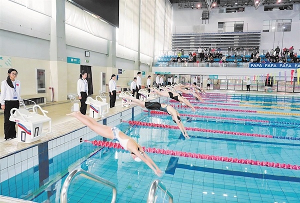 12月13日,武汉市第四届“江豚”游泳比赛暨武汉市中小学生游泳比赛在洪山体育文化中心开幕。来自江安、江汉、红山等12个区的72支球队的582名小球员参赛。比赛根据选手年龄分为A、B、C、D四个组别,目标年龄组为8岁至17岁。 朱田都市报记者胡迪凯通讯员张莉天慧摄影报道