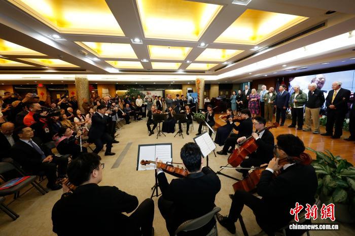 8月29日,“中国,中国和美国民间友谊音乐会议的认可”。它在纽约的中国领事馆举行。这张照片显示了纽约中国领事,陈·李(Chen Lee)和其他参与者唱着“永恒友谊”。摄影摄影,中国新闻服务记者,Riaopan