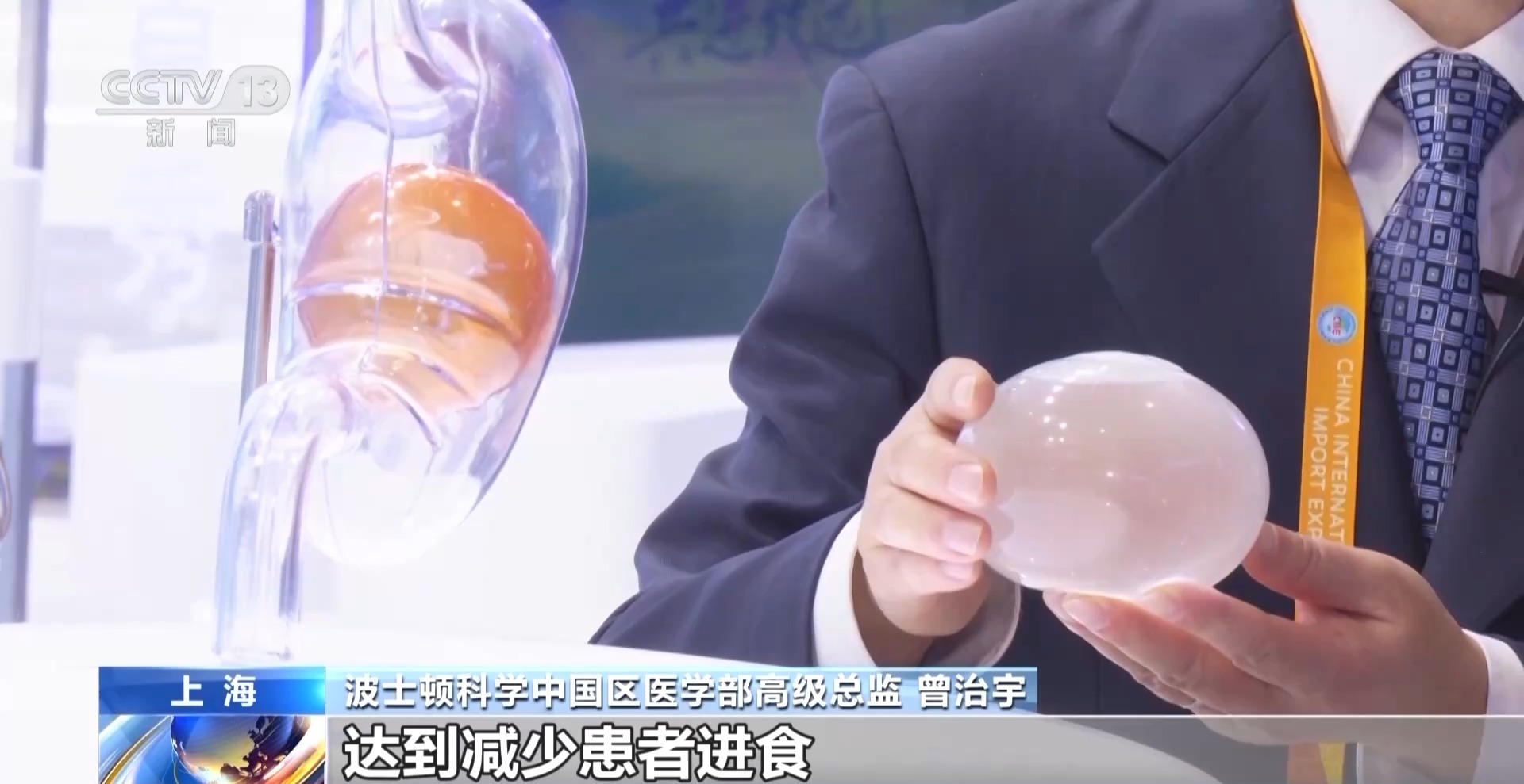 波士顿科学中国高级医疗总监曾志宇:胃镜是从病人的嘴里传到胃里的。连接导管。通过导管注入约 500 毫升盐水以填充胃部。气球占据了胃内的大部分空间,从而减少了患者的食物摄入量,延迟了胃排空,增加了饱腹感,最终导致体重减轻。