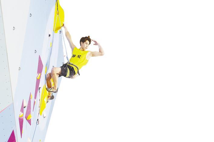 潘宇飞心无旁骛,全神贯注地盯着面前的每一块岩石,终于从容地完成了攀登。在陕西省全运会上获得难度和攀岩两项金牌后,他再次登上顶峰。他为湖北队赢得了荣誉,在主场也展现了统治力(潘宇飞出生于广州)。 “我很兴奋也很满足!”离开赛场时,潘宇飞说道。