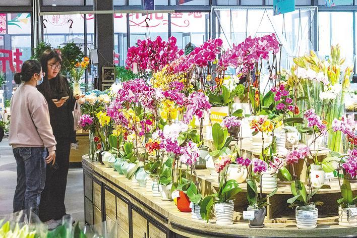 11月底,市民在汉口北花城国际花卉艺术交流展示中心购买进口鲜花。 (湖北日报全媒体记者聂娜通讯员方轩、刘纯供图)