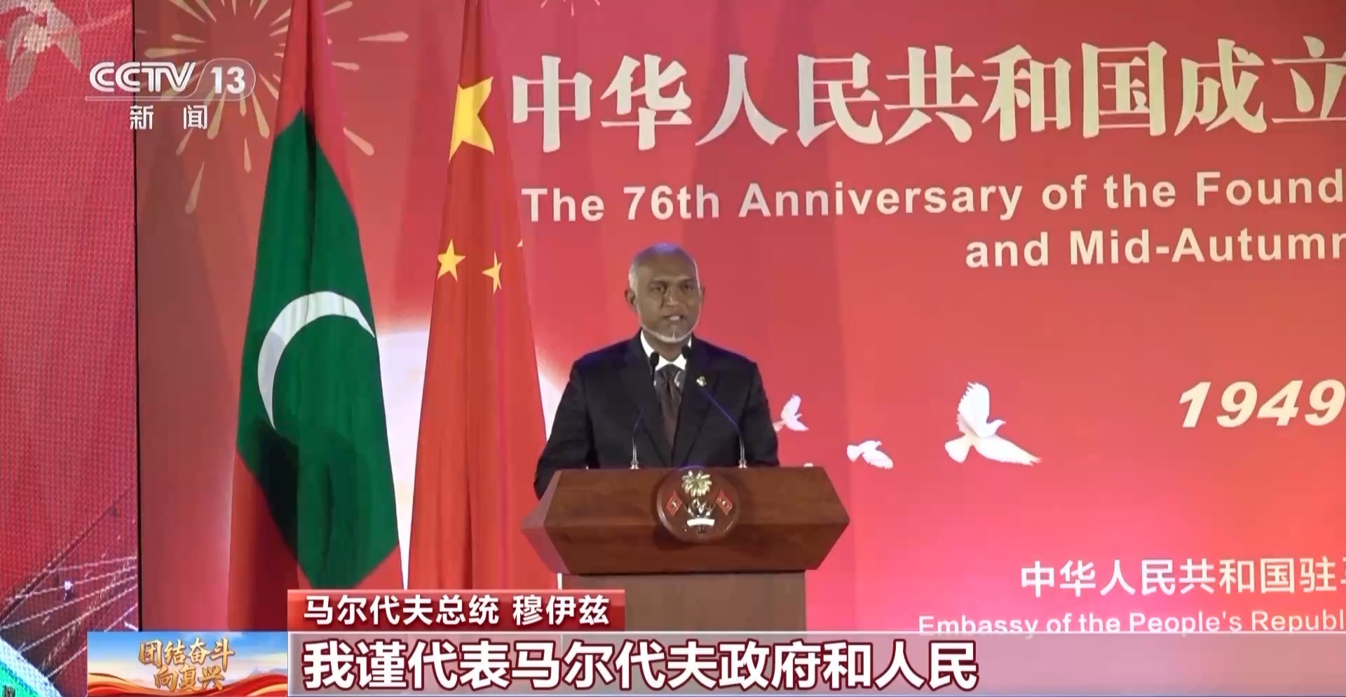 马尔代夫MUIZ总统:代表政府和马尔代夫人民,我想向您的杰出的XI Jinping,中国政府和人民致以最热烈的祝贺和最良好的祝愿。我不仅亲眼目睹了中国的巨大发展成就,而且还深深地感受到了中国人民的谦卑和热情好客。我们重视中国对多边主义的坚定承诺及其在保护发展中国家的权利和利益方面的声音。愿五星级危险信号,充满骄傲和Mi继续展翅高飞,愿中国人民的伟大征程继续激励世界。